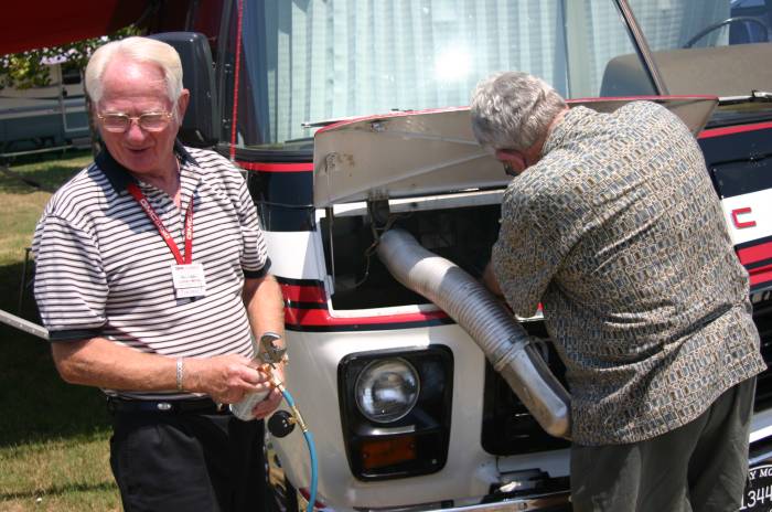 Lorren White getting his "Annual Refrigerant Refil" performed by Gordon Dunlap.
