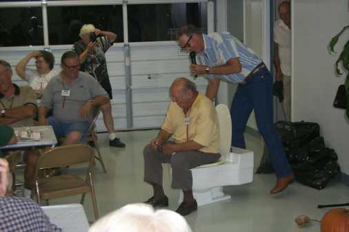 Tommy Walker coaxes Dr. Dan Feinstein to play his harmonica at his 'reported' favorite perch.
